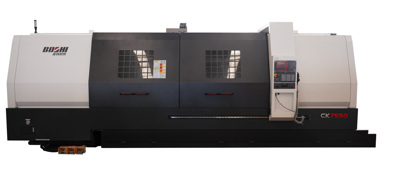 CK7550 CNC lathe is a large full-function CNC horizontal lathe, with high-end CNC system and multi-station horizontal turret tool rest, high degree of automation, easy to operate, cost-effective. The machine adopts high strength cast iron, bed base structure, inclined guide rail, through-hole spindle structure, vibration resistance design and wide area AC spindle motor, spindle bearing and feed screw special bearing transmission noise is low; Multi - station turret tool rest, can be continuous indexing, knife replacement nearby.